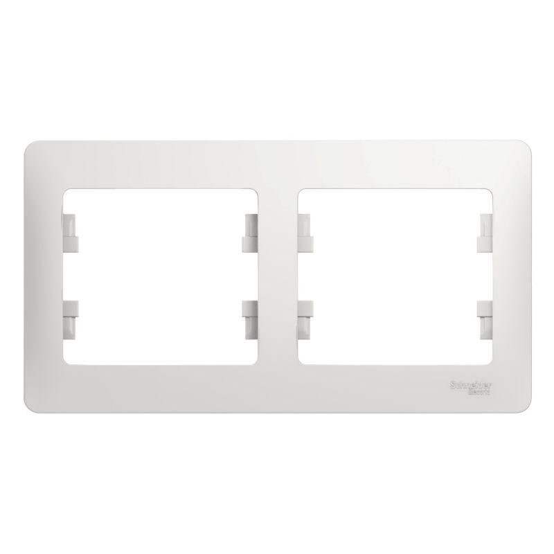 Рамка Systeme Electric (ранее Schneider Electric) серии Glossa (цвет белый) двухместная. Устанавливается в горизонтальном положении. Выполнена из материала PС+ASA, стойкого к УФ-излучению и появлению царапин. Позволяет гармонично вписать электроустановочное изделие в интерьер помещения.