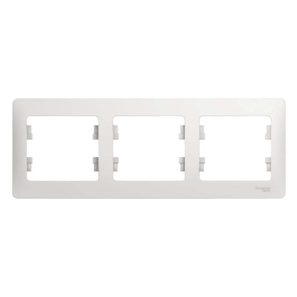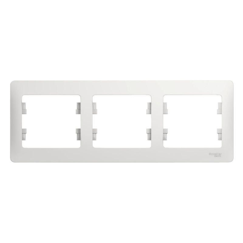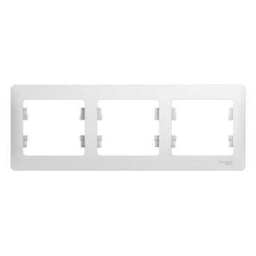 Рамка Systeme Electric (ранее Schneider Electric) серии Glossa (цвет белый) трёхместная. Устанавливается в горизонтальном положении. Выполнена из материала PС+ASA, стойкого к УФ-излучению и появлению царапин. Позволяет гармонично вписать электроустановочное изделие в интерьер помещения.