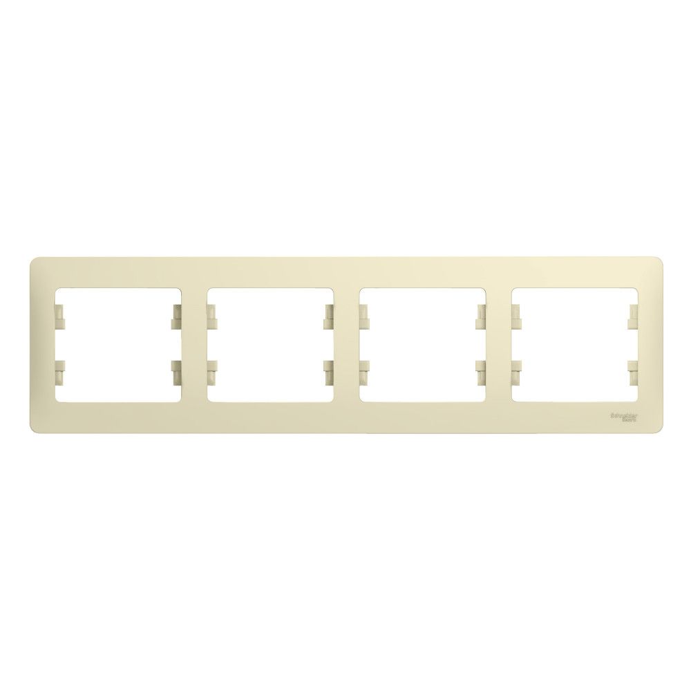 Рамка Systeme Electric (ранее Schneider Electric) серии Glossa (цвет бежевый) четырёхместная. Устанавливается в вертикальном положении. Выполнена из материала PС+ASA, стойкого к УФ-излучению и появлению царапин. Позволяет гармонично вписать электроустановочное изделие в интерьер помещения.