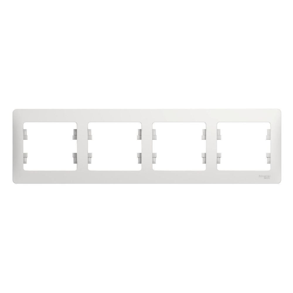 Рамка Systeme Electric (ранее Schneider Electric) серии Glossa (цвет белый) четырёхместная. Устанавливается в горизонтальном положении. Выполнена из материала PС+ASA, стойкого к УФ-излучению и появлению царапин. Позволяет гармонично вписать электроустановочное изделие в интерьер помещения.