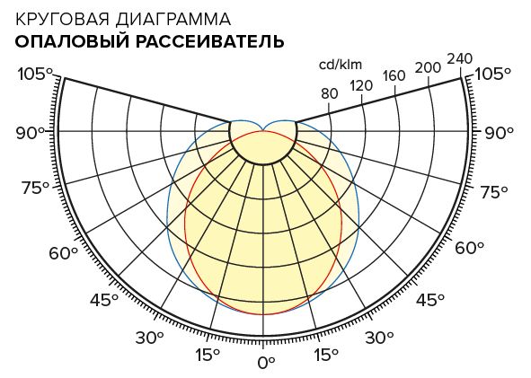 ● Материал рассеивателя — объемный опаловый рассеиватель из полистирола.