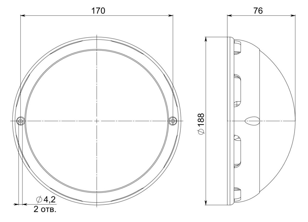 Габариты светильника с креплением ДхШхВ, мм: