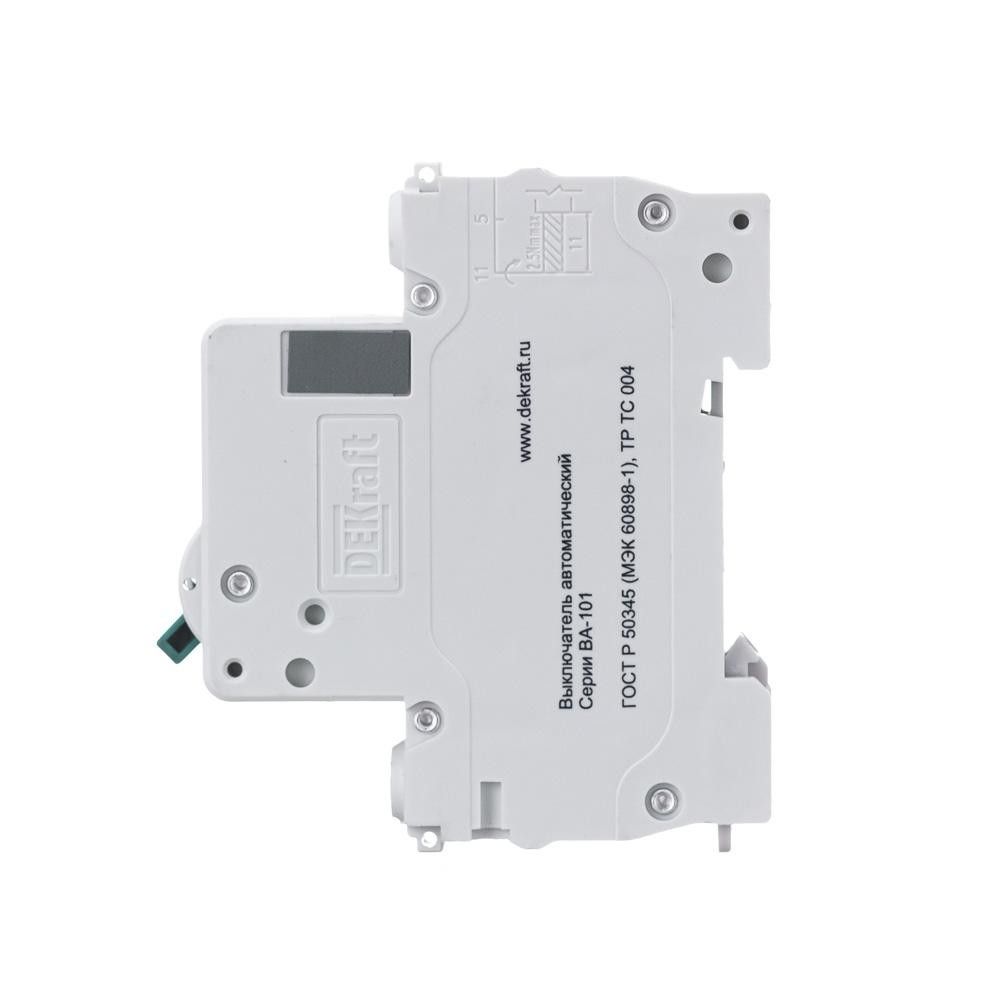 Автоматический выключатель серии ВА-101 DEKraft, 1P, номинальный ток 10 А, характеристика С, отключающая способность 4,5 кА. Новый механизм расцепления мгновенно разрывает цепь при возникновении аварии. 5 монолитных заклепок повышают прочность корпуса аппарата. Сплошная лицевая панель обеспечивает безопасность эксплуатации аппарата. Боковые каналы охлаждения повышают стабильность работы при высоких температурах окружающей среды. Полностью автоматизированный контроль качества производства.