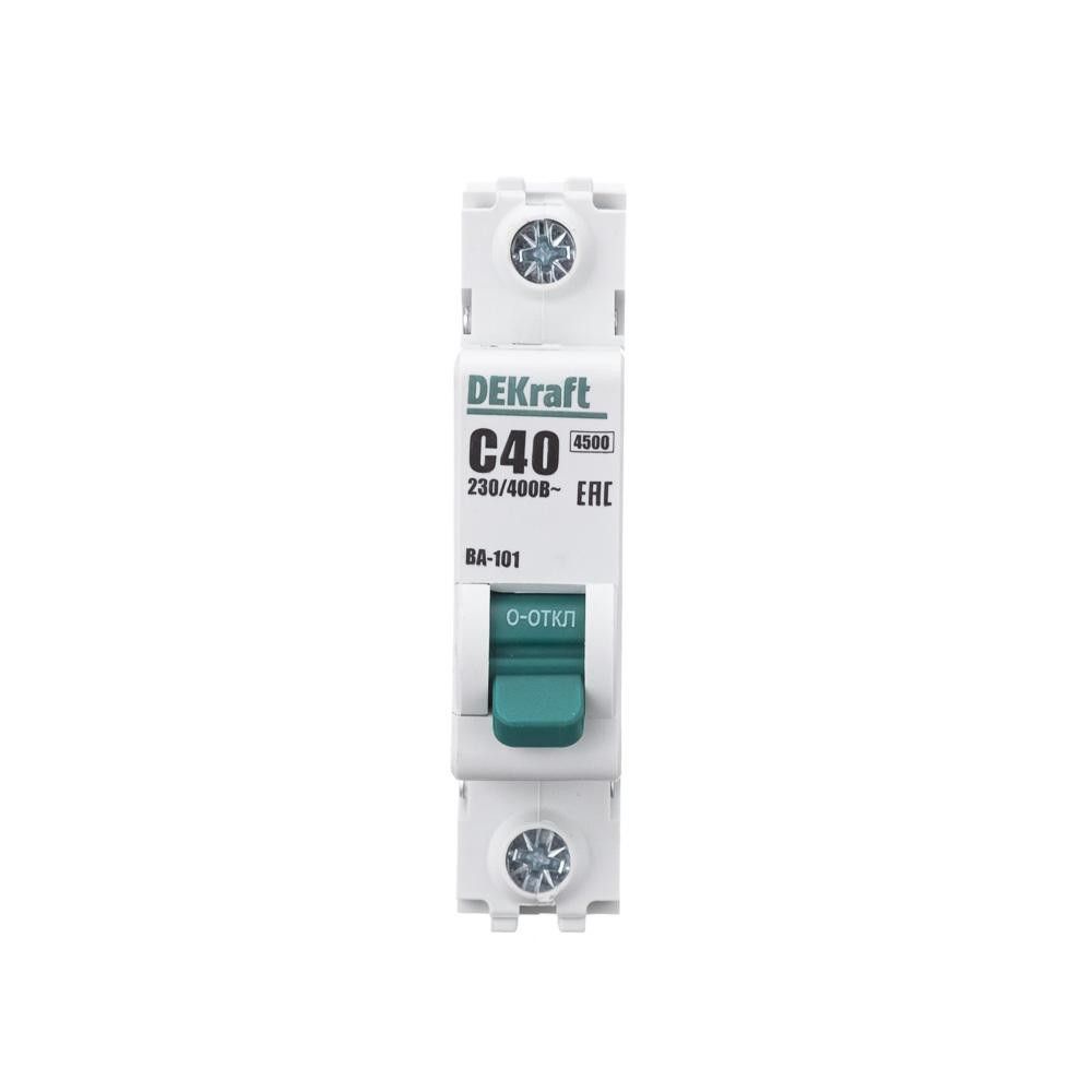 Автоматический выключатель серии ВА-101 DEKraft, 1P, номинальный ток 40 А, характеристика С, отключающая способность 4,5 кА. Новый механизм расцепления мгновенно разрывает цепь при возникновении аварии. 5 монолитных заклепок повышают прочность корпуса аппарата. Сплошная лицевая панель обеспечивает безопасность эксплуатации аппарата. Боковые каналы охлаждения повышают стабильность работы при высоких температурах окружающей среды. Полностью автоматизированный контроль качества производства.