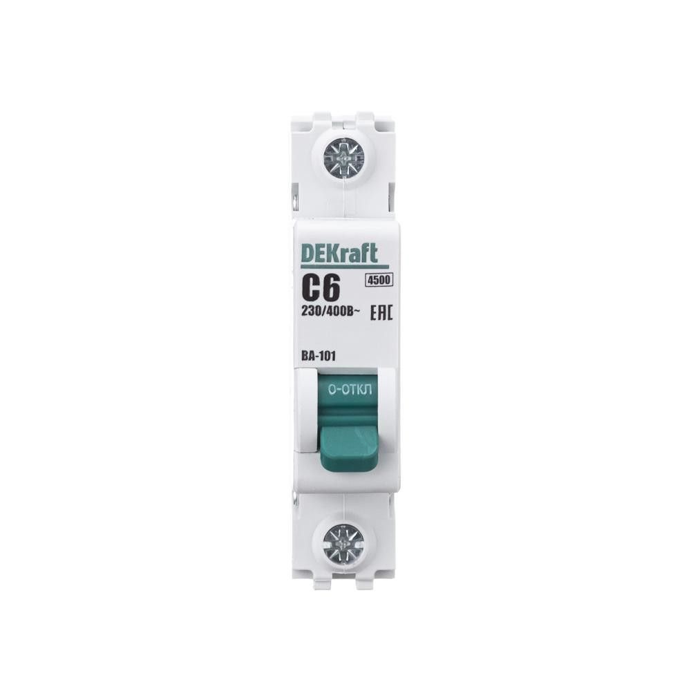 Автоматический выключатель серии ВА-101 DEKraft, 1P, номинальный ток 6 А, характеристика С, отключающая способность 4,5 кА. Новый механизм расцепления мгновенно разрывает цепь при возникновении аварии. 5 монолитных заклепок повышают прочность корпуса аппарата. Сплошная лицевая панель обеспечивает безопасность эксплуатации аппарата. Боковые каналы охлаждения повышают стабильность работы при высоких температурах окружающей среды. Полностью автоматизированный контроль качества производства.