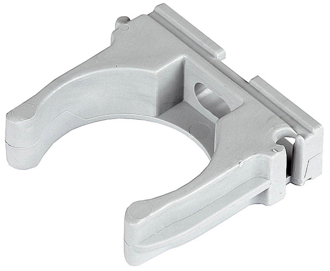 Предназначена для крепления гладких труб ПВХ или гофрированных труб одного диаметра к поверхности стен, потолков, полов или перегородок. Для монтажа предусмотрено технологическое отверстие под дюбель или саморез. Для удобства блочного монтажа состыковываются друг с другом с помощью специальных фиксаторов типа «ласточкин хвост».