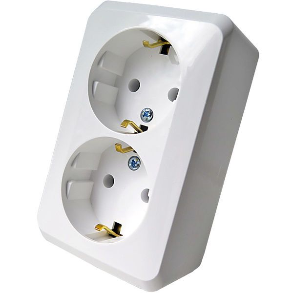 ЭТЮД Розетка двойная наружная с заземлением со шторками белая
