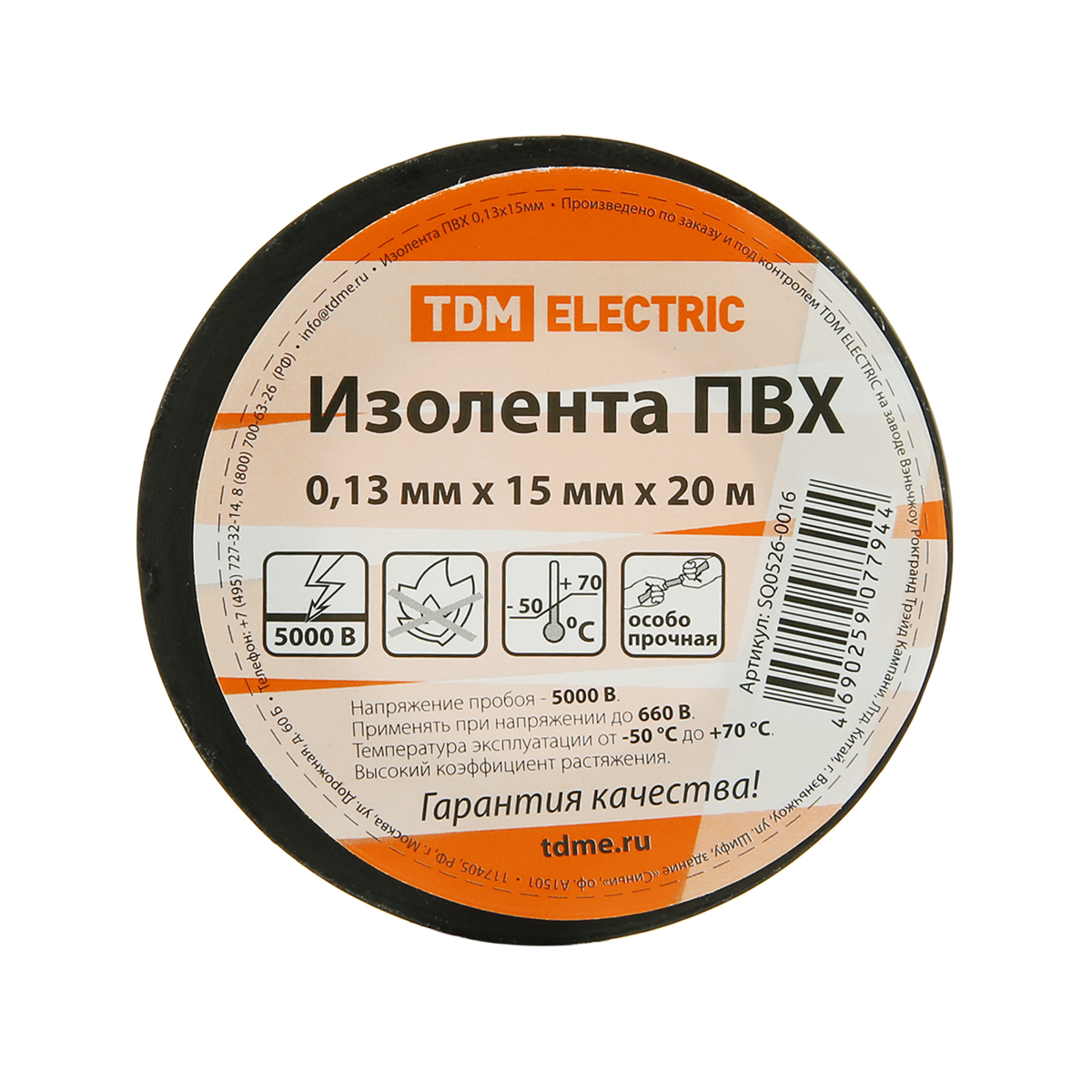 Изолента черная ПВХ 0,13*15мм*20м TDM