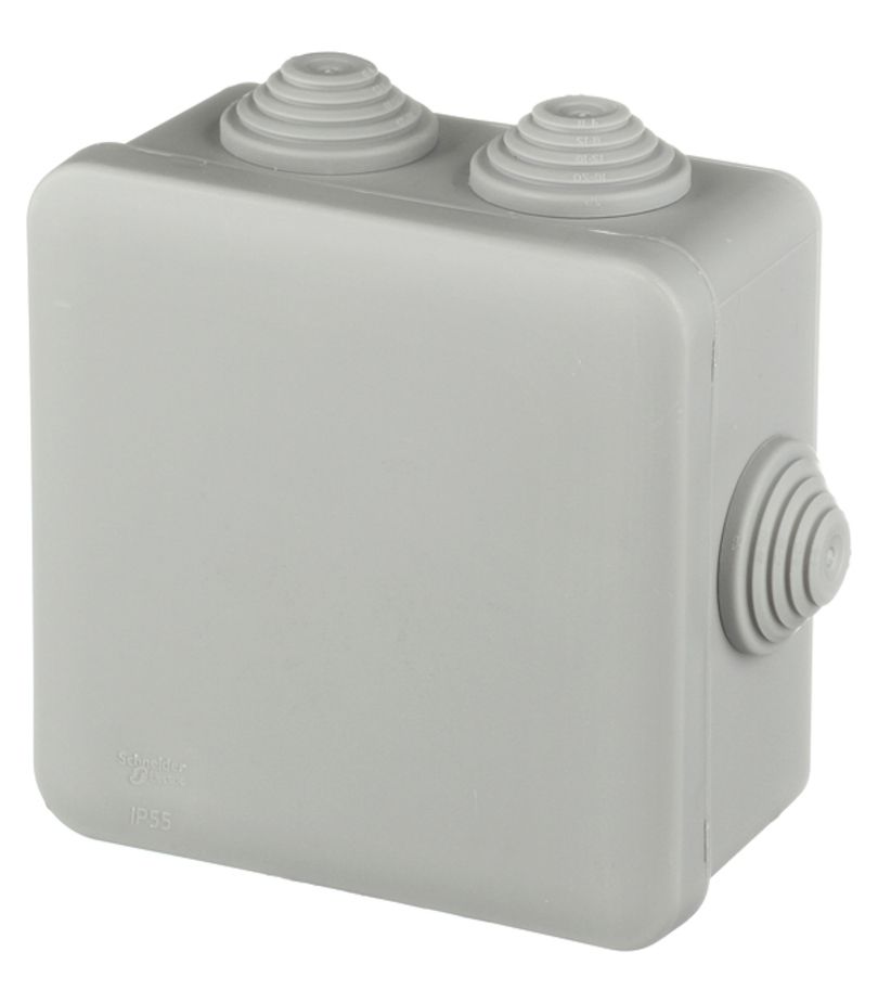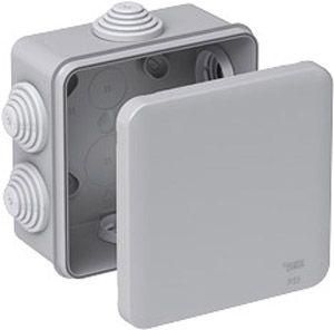 КОРОБКА РАСПРЕДЕЛИТЕЛЬНАЯ ОТКРЫТОЙ УСТАНОВКИ, внутренние размеры 100X100X50 мм, габариты 130х130х58 мм, 6 сальников, степень пылевлагозащиты IP55, цвет-серый