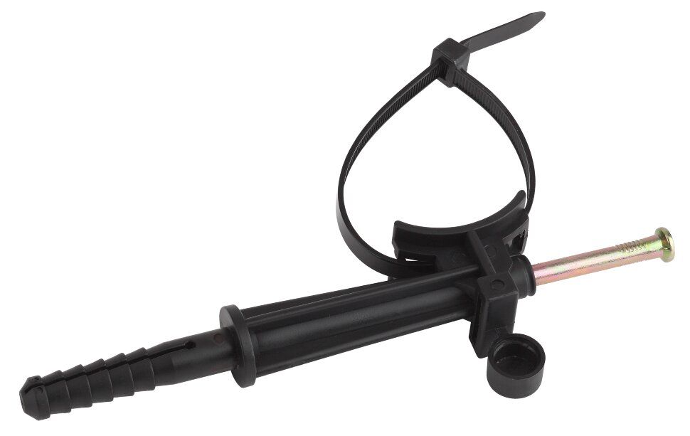 Фасадное крепление типа sf-60 предназначено для крепления спусков пучка проводов СИП по опорам или фасаду здания. Состоит из дюбеля и гвоздя. Монтаж дюбеля осуществляется в предварительно подготовленное отверстие d12, затем фиксируется гвоздем. При монтаже в деревянную поверхность дюбельная часть срезается и гвоздь вбивается напрямую. Крепление устойчиво к ультрафиолетовому и солнечному излучению, высоким и низким температурам, коррозии и агрессивным атмосферным воздействиям.