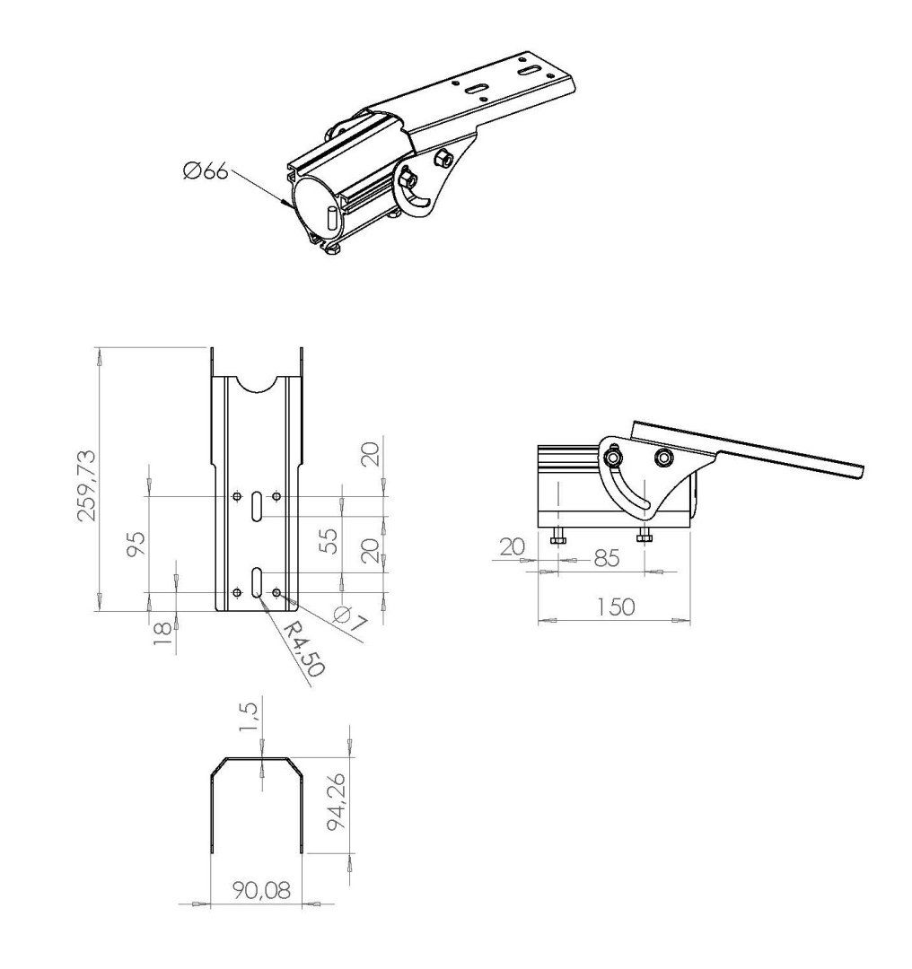 Кронштейн консоль Ø35mm - Ø60mm регулируемый +35° / -90°