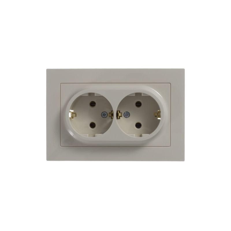 Розетка ATLASDESIGN двойная с заземлением 16А в сборе бежевый