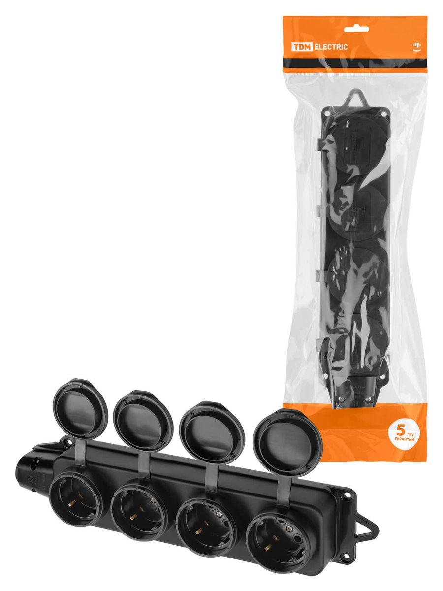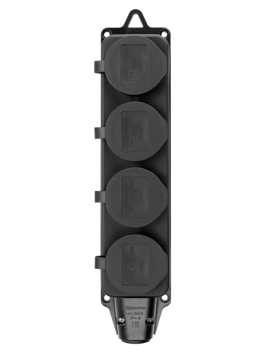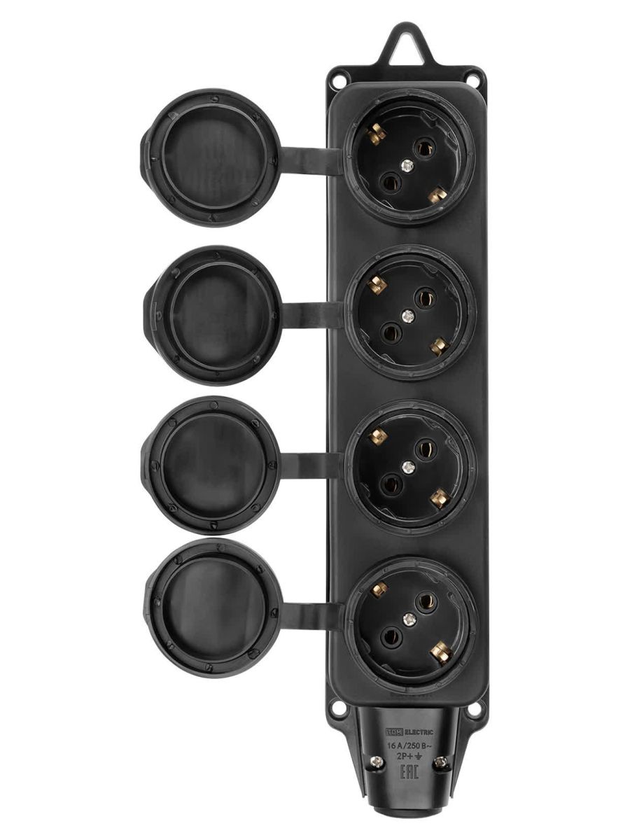 Розетка четырехместная с заглушками каучук 2Р+РЕ 16А 250В IP44