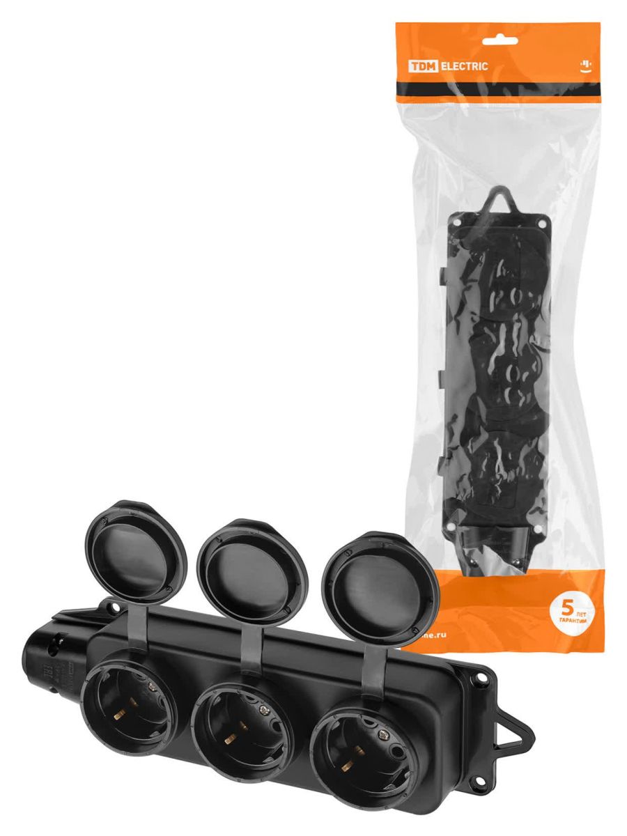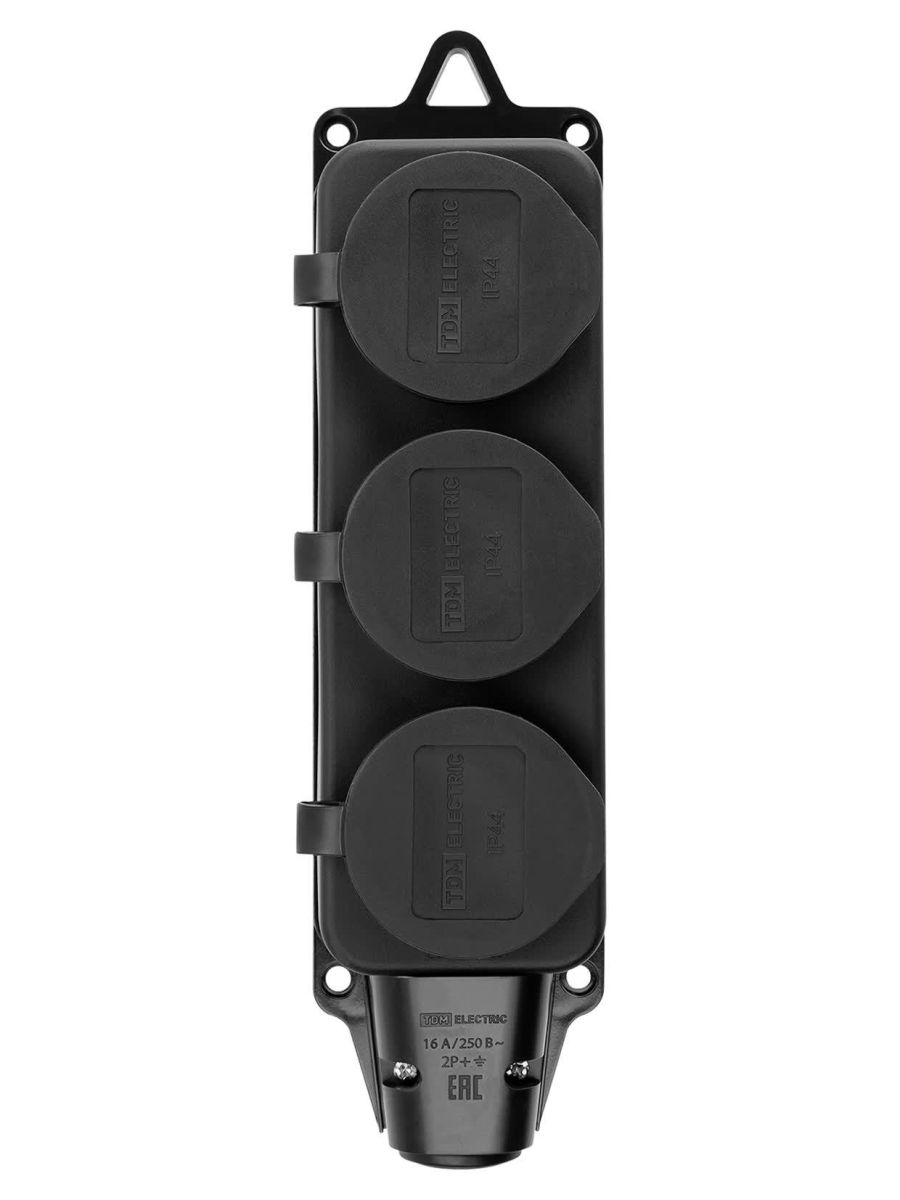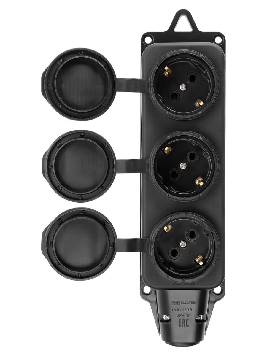 Розетка трехместная с заглушками каучук 2Р+РЕ 16А 250В IP44