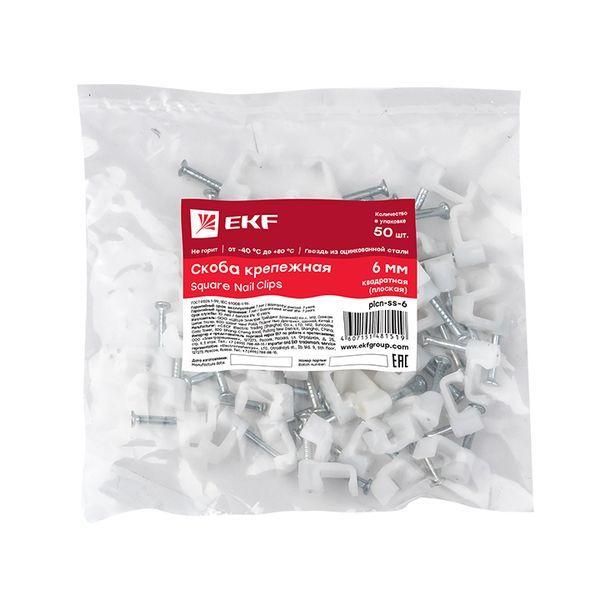 Скоба крепежная квадратная плоская 6мм (уп.50шт) EKF plcn-ss-6