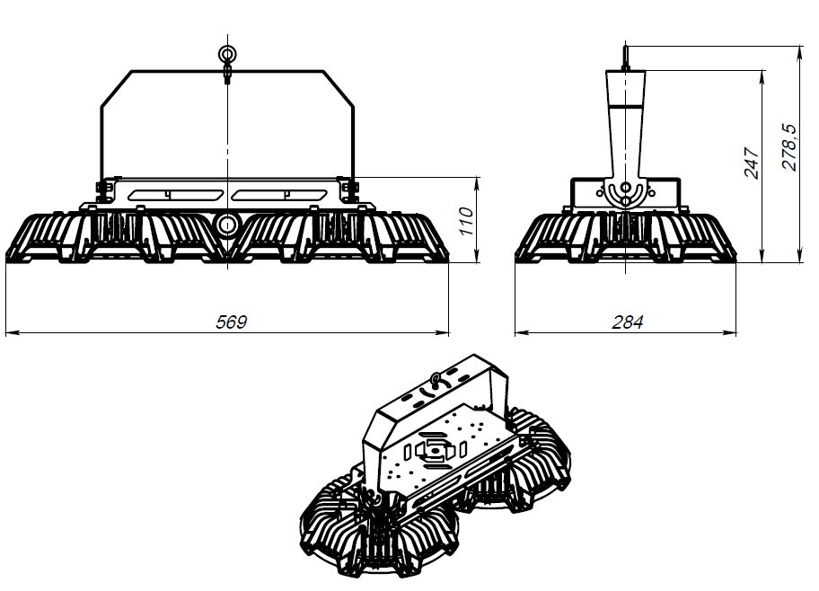 Светильник светодиодный ATAMAN HB 2 300 750 D120