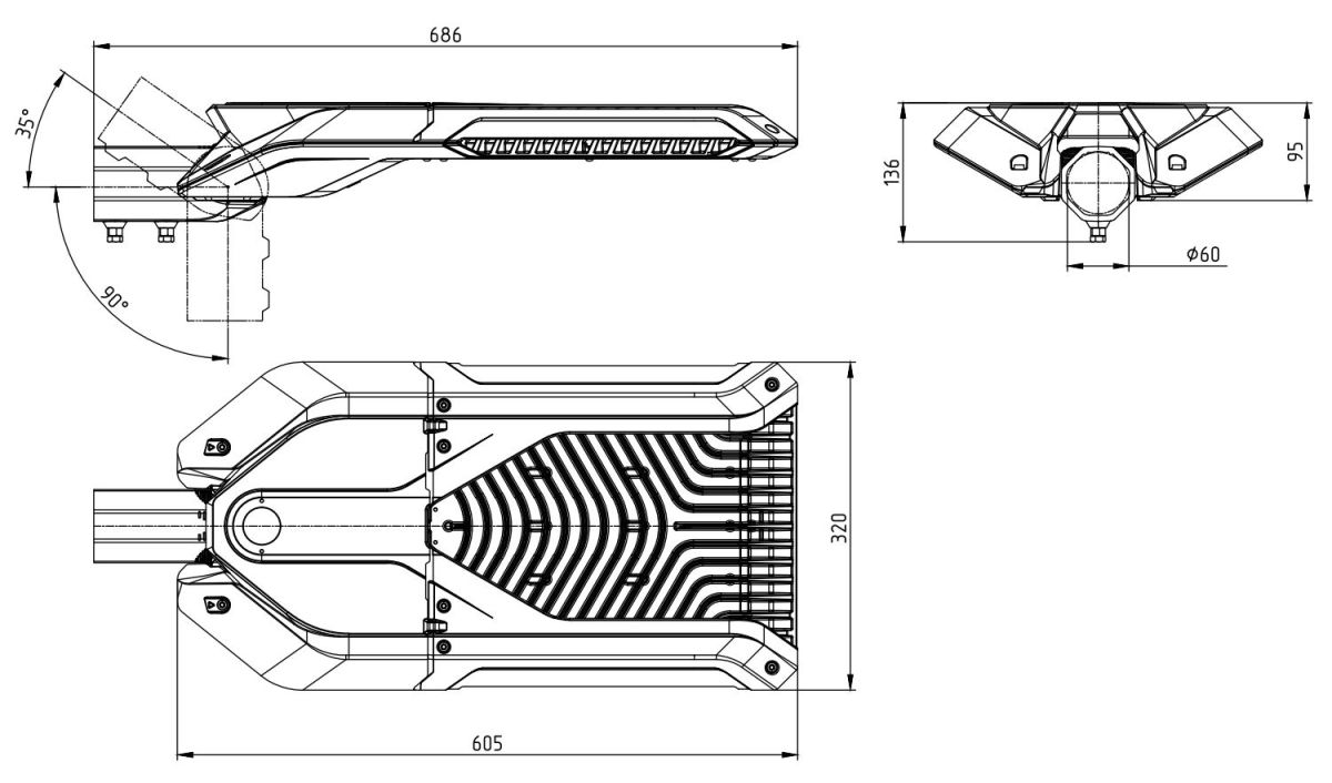 Светильник светодиодный ATAMAN-STREET 210-3 740 SW GL