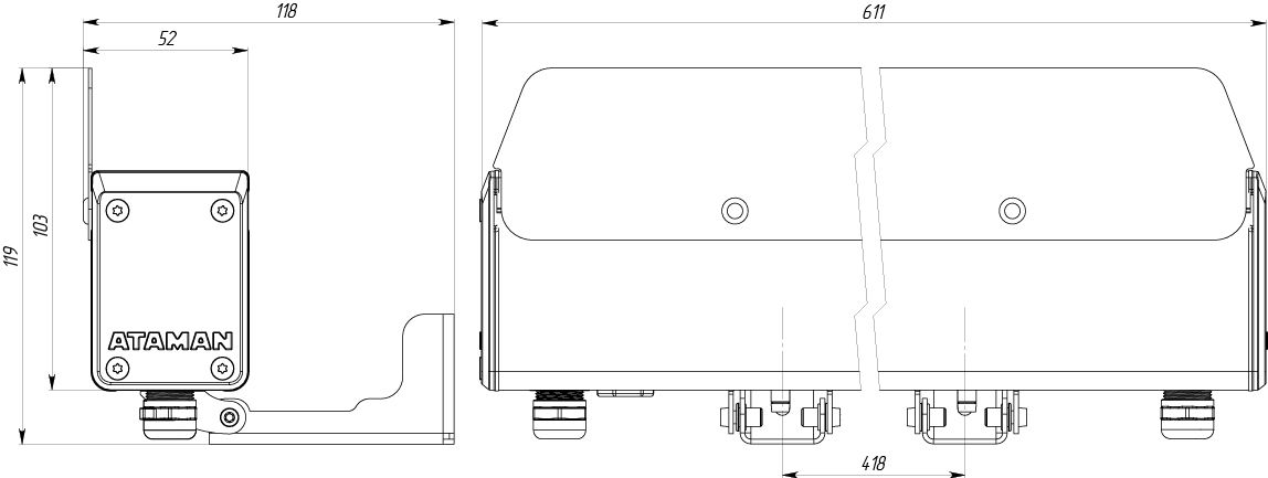 Габариты светильника с креплением ДхШхВ, мм: