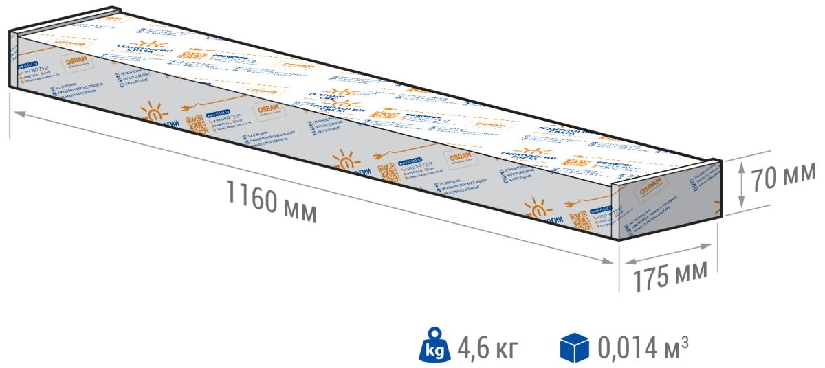Габариты светильника ДхШхВ, мм: