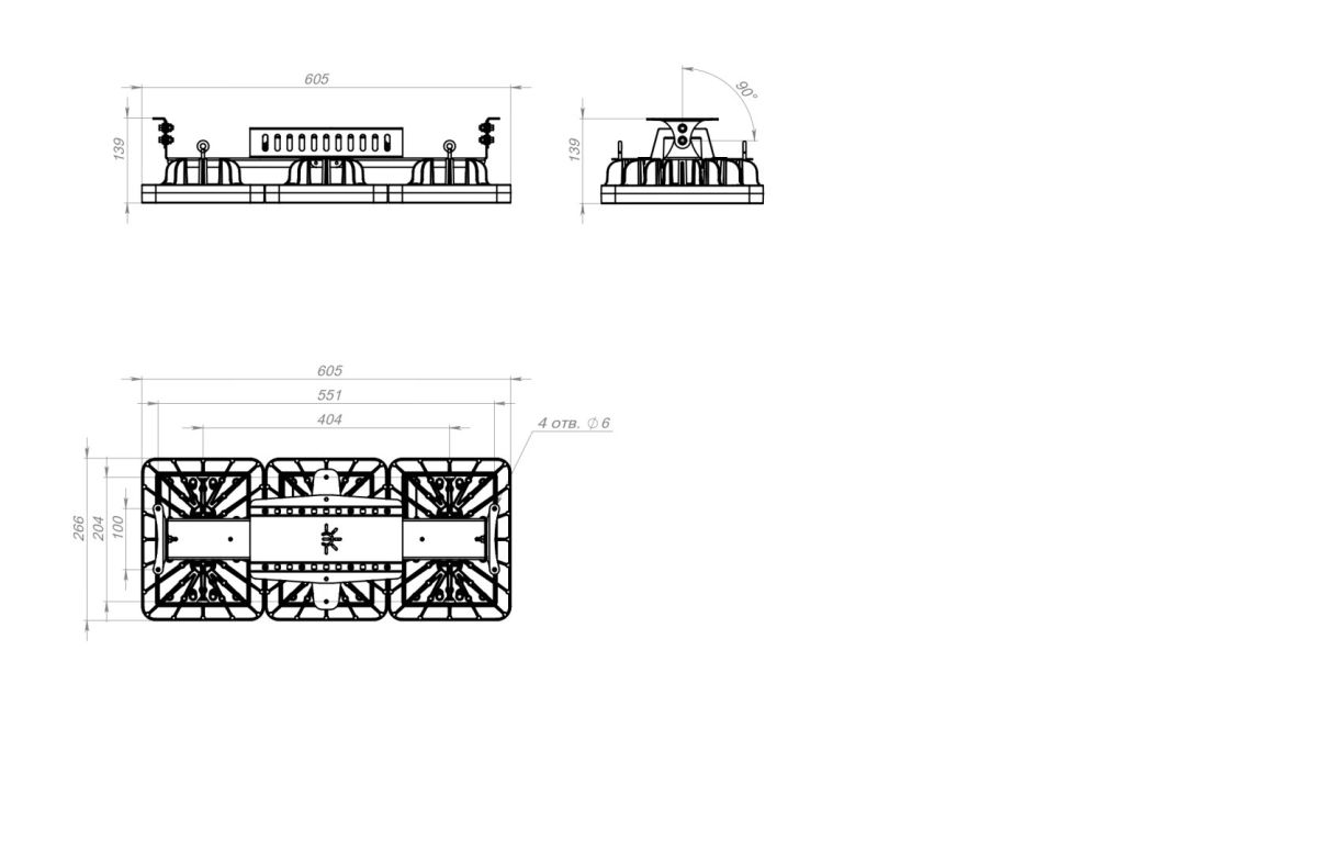 Габариты светильника ДхШхВ, мм: