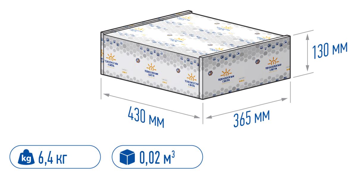 Габариты светильника ДхШхВ, мм: