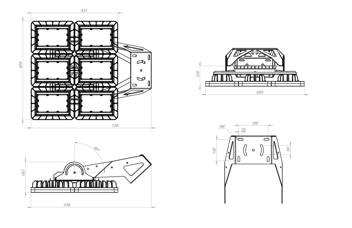 Габариты светильника с креплением ДхШхВ, мм: