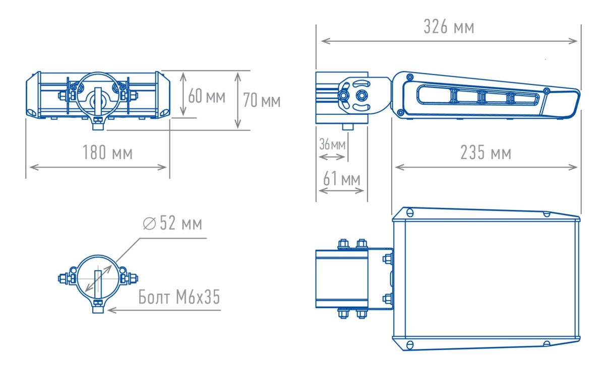 Кронштейн консоль Ø30mm - Ø52mm регулируемый +65° / -65°