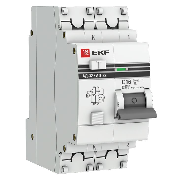 Дифференциальный автоматический выключатель АД-32 серии EKF PROxima представляет собой аппарат сочетающий функции автоматического выключателя с устройством защитного отключения. При обнаружении автоматическим выключателем в защищаемом участке сети тока утечки на землю или сверхтока происходит срабатывание устройства, приводящее к отключению защищаемой сети. ГОСТ Р51327-1-2010 (МЭК 60898-2-2006) . Преимущества - 1. Патентованный двухпозиционный зажим на DIN-рейку. 2. Повышение безопасности электромонтажных работ благодаря прозрачной вставке над индикатором состояния контактов. 3. Встроенная, современная электронная плата с повышенной защитой от импульсных помех и перенапряжений. 4. Наличие пломбируемых панелей для защиты от несанкционированного доступа к проводникам. 5. Комбинированные зажимы из посеребренной меди и анодированной стали скругленной формы с насечками.