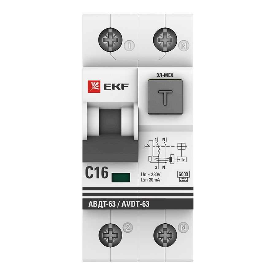 Выключатель автоматический дифференциальный АВДТ-63 2п 16А 30мА