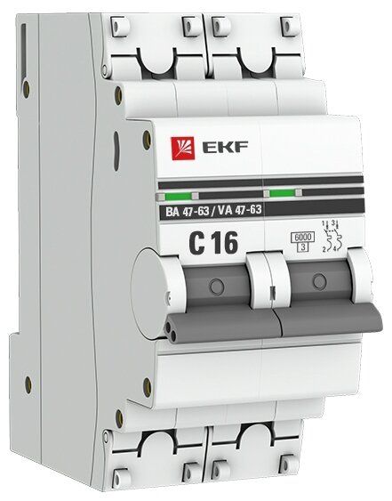 Выключатель автоматический двухполюсный 16А С ВА47-63 4.5кА PROxima