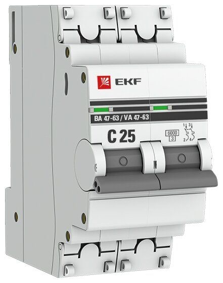Выключатель автоматический двухполюсный 25А С ВА47-63 4.5кА PROxima