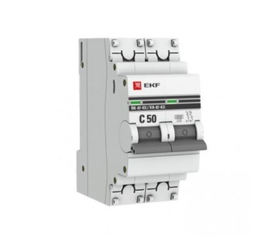 Выключатель автоматический двухполюсный 50А С ВА47-63 4.5кА PROxima