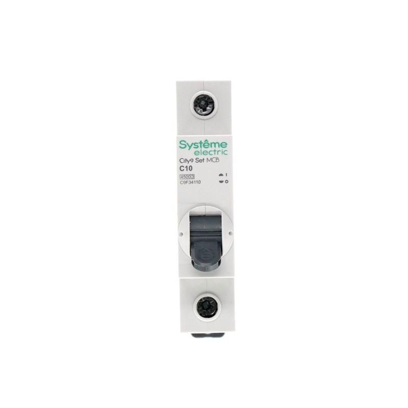 Автоматический выключатель серии City9 Set Systeme Electric, 1-полюсный, номинальный ток 10 А, характеристика С, Icn 4.5 кА. Применяется в электрических сетях напряжением 230 В. Предназначен для защиты от перегрузок и токов короткого замыкания. Оснащен механизмом ''мгновенной коммутации''. Ударопрочный корпус из специального пластика с 6 металлическими заклепками. Безопасные клеммы исключают попадание кабелей в заклеммное пространство.